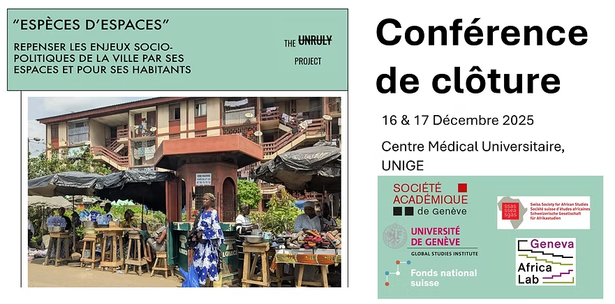 Final Conference – Unruly Spaces: Public Space, Society and Politics in Urban Africa 16 déc. 2025, 09:00 – 17 déc. 2025, 13:00 Salle S4-5 & Auditoire Boymond, Centre Médical Universitaire,...